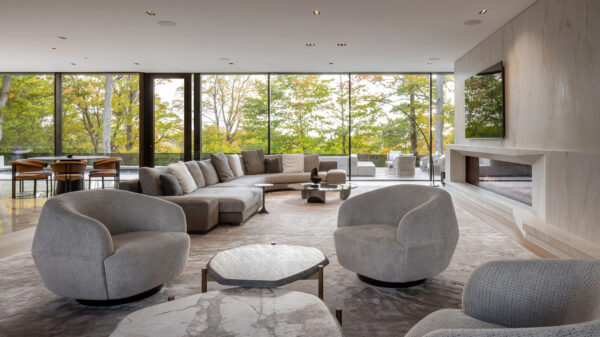In Woodbridge just north of Toronto, the National Golf Club of Canada routinely lands on the short lists of most experts ranking the best golf courses in the world and certainly those in Canada. Now, many of the houses in the neighbourhoods around it are being redeveloped. One of those, the Clubhouse designed by FrankFranco Architects, a Toronto-based firm, sits on a prominent corner and overlooks The National.