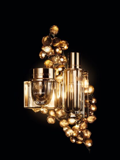 The new formulation, which Dior calls Golden Drop Life Technology, is the latest vintage to multiply the anti-aging benefits for its wearers. Internal studies show 30 per cent increased collagen production after use of the cream, with results synergistically magnified when paired with the serum or lotion. “The efficacy of this golden drop technology is quite amazing, reversing the signs of aging on more than 700 longevity genes,” Bavouzet says, mentioning numbers like a mad scientist. Adds Virginie Couturaud, scientific communication director at Christian Dior Parfums, “Thirty kilograms of vine shoots are needed to create one kilogram of gold sap—it’s very, very rare and very important.” Using biotechnology, the active ingredients are carefully infused in L’Or de Vie skin care to suppress the skin’s aggressors whilst promoting collagen production on a superior level. “We successfully targeted 35 signs of aging, including wrinkles, firmness, and lifting effect, texture, density—all the signs of aging you can see on our face.”