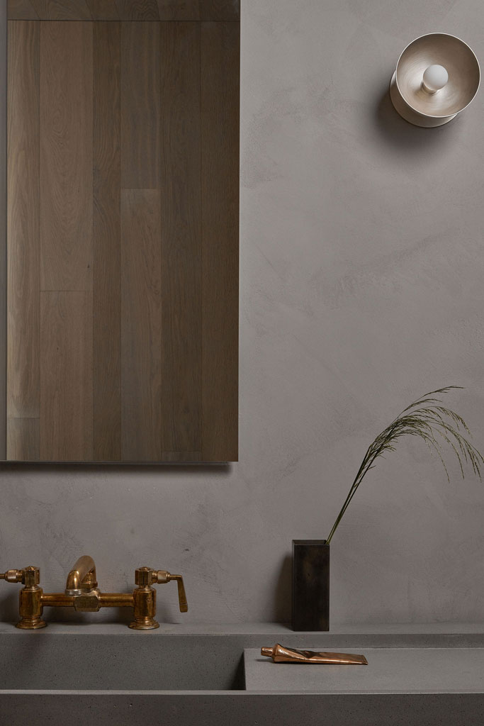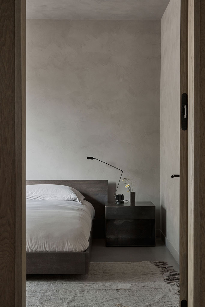 Inside, the ceilings, covered in white-oak boards, also connect the house with its wood-clad exterior and its forested setting. Concrete floors create a neutral backdrop for the furnishings, curated by Ashley Botten Design. The centrepoint of the layout is the shared space: kitchen, dining room, and living room.