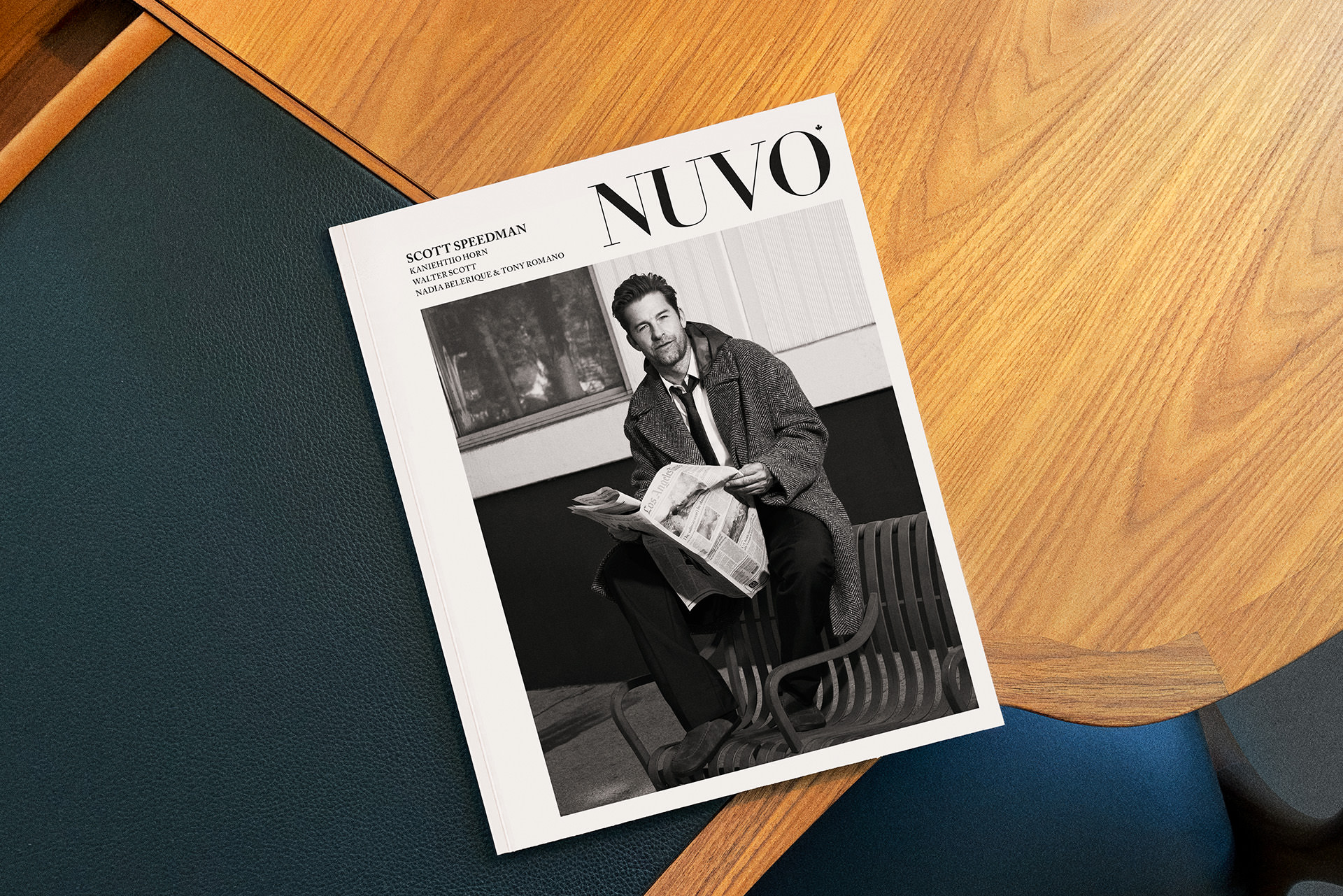 And bring along your copy of NUVO. There’s a lot to read in this issue: cover talent Scott Speedman has come a ways since his breakout role in the late-’90s coming-of-age drama Felicity to his most recent role in the horror series Teacup, where he plays a flawed father who is trying to keep his family safe from a mysterious threat. Artistic power couple Nadia Belerique and Tony Romano open up about juggling life and work. Montreal’s Samuel Lambert gives us insight into the success of his lighting atelier Lambert & Fils. Interdisciplinary artist Walter Scott tells us how his graphic novel series Wendy came to be. Hear from Kaniehtiio Horn about her struggles as an Indigenous actor, travel to Zermatt, Switzerland, choose your slope-style look from our fashion pages, and check out our guide to the best in Canadian sparkling wine. There’s plenty more to discover in NUVO—and also while watching the world from that park bench.