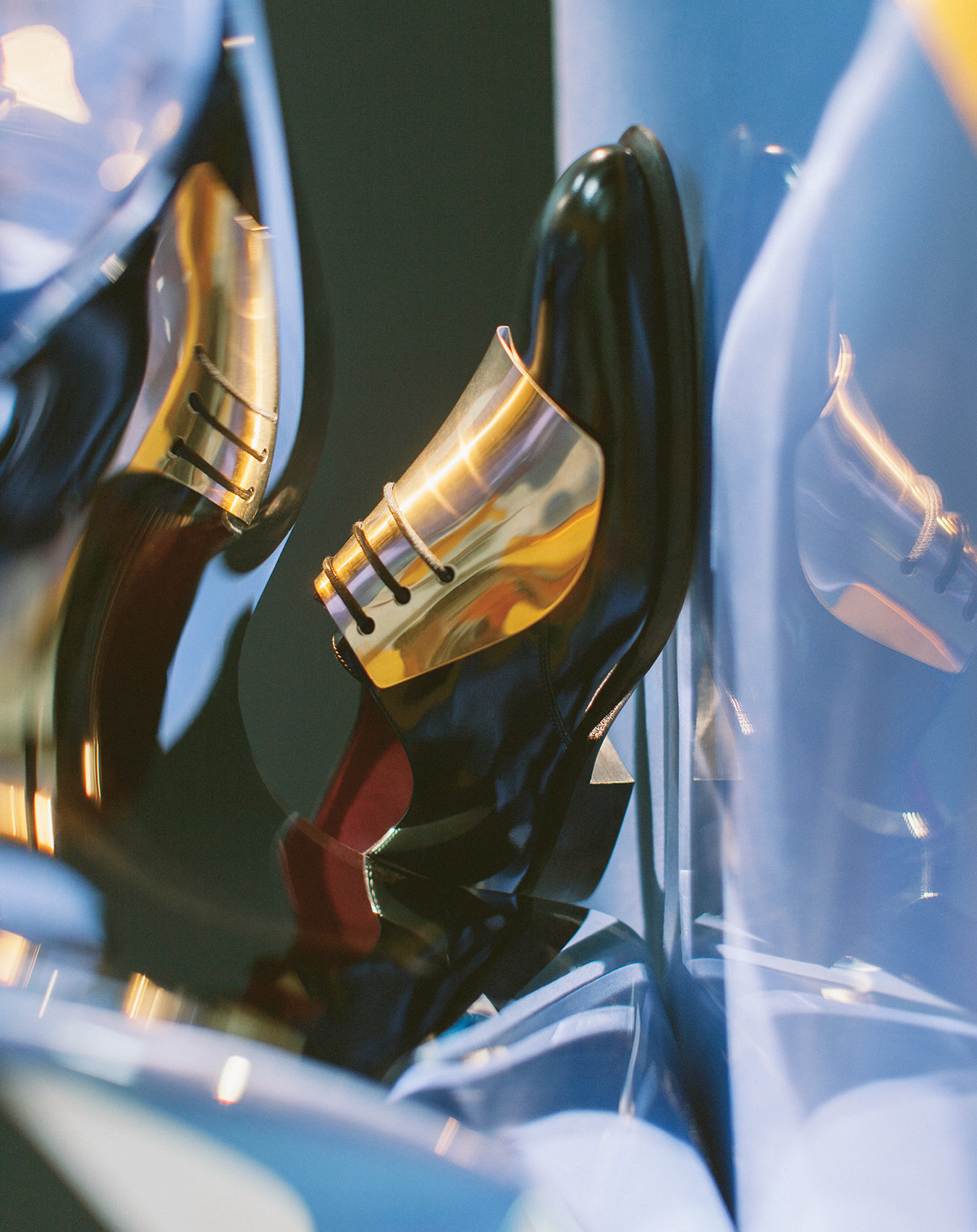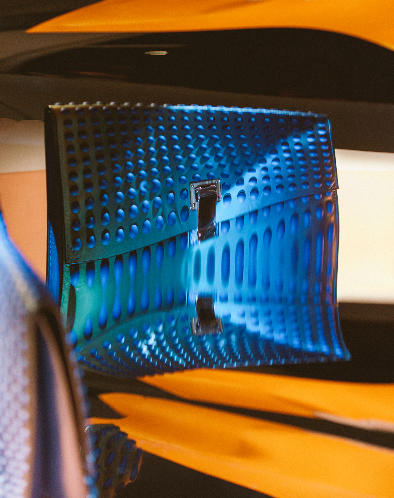 A slick dreamworld juxtaposed with the vivid colours and patterns of accessories from the autumn/winter collections.