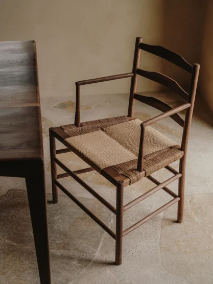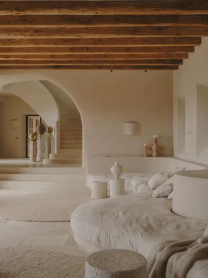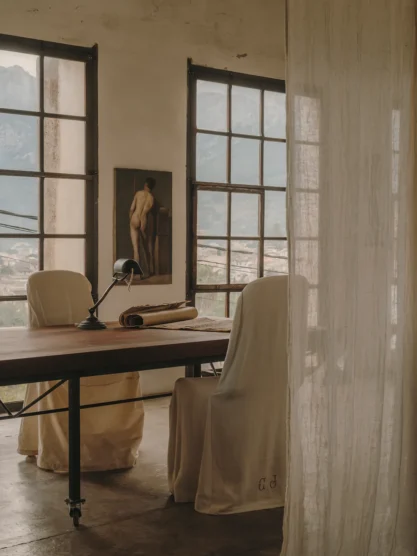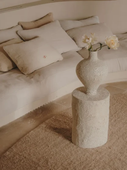And indeed, in all her work, what remains consistent is a remarkable sense of balance—old yet new, raw yet refined, practical yet beautiful, simple yet layered. Whether it’s the organic curves and soft limewashed surfaces of her Talana residential project, a clay and fine porcelain side table that extends into an amphora, or a linear dining chair made from walnut and local straw (the last two are part of her collection officially launching at the end of the year), each design feels innately and timelessly human, as if hewn from the earth and as likely to appeal to a fourth-century Roman emperor as a modern city dweller. Currently in the works: a dreamy domed bóveda mosquito net.