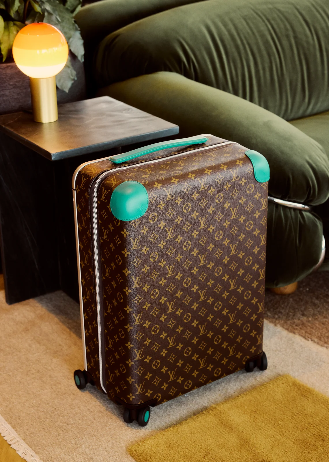 Louis Vuitton Trolley Horizon 55 with Borneo Green accents.