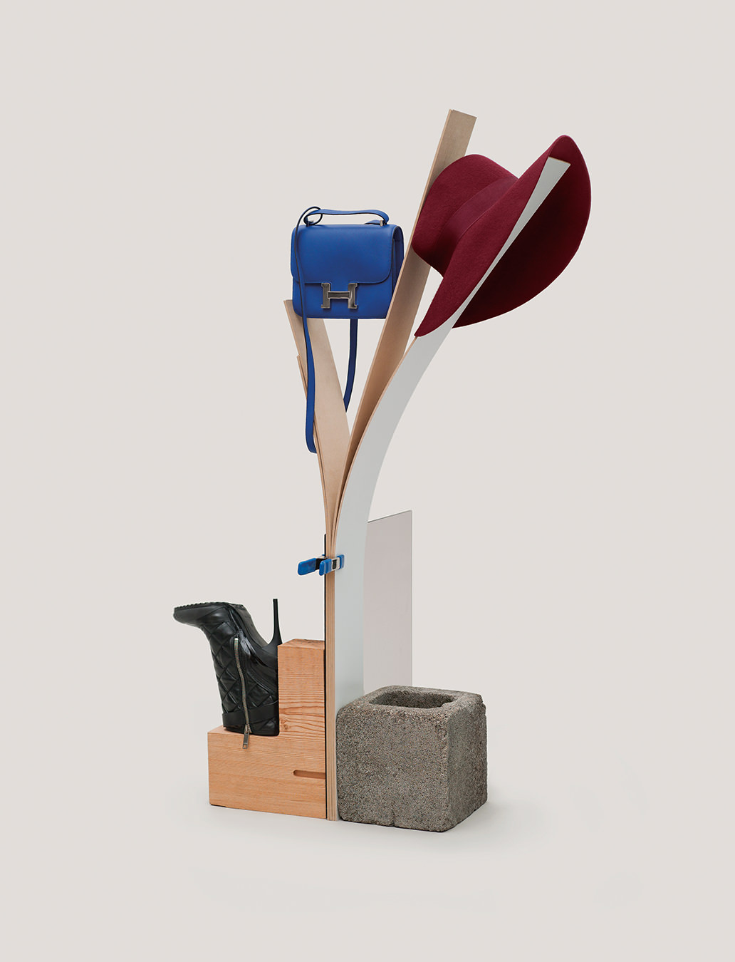 Burberry boot, available at Holt Renfrew; Hermès purse; San Diego Hat Company hat, available at Edie Hats.