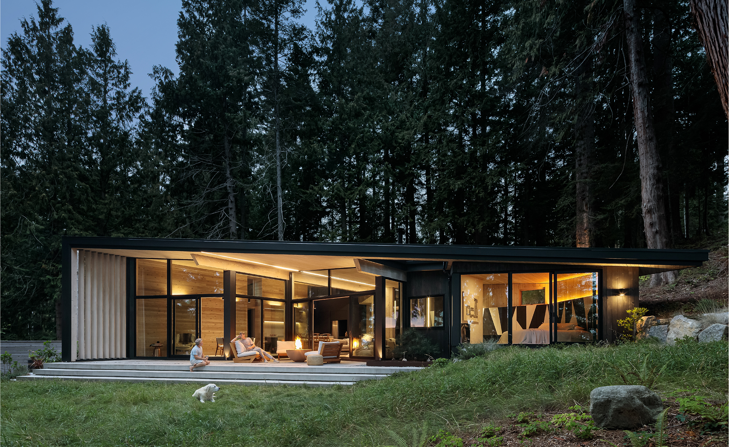 Good architecture builds windows instead of walls and makes poetry out of practical decisions. Take the cabin at Halfmoon Bay designed by, and for, a partner at Frits de Vries Architects + Associates. Where woods meet water, it’s a retreat for him, his partner, and their yellow lab, Taavi.