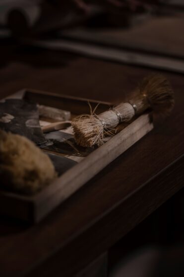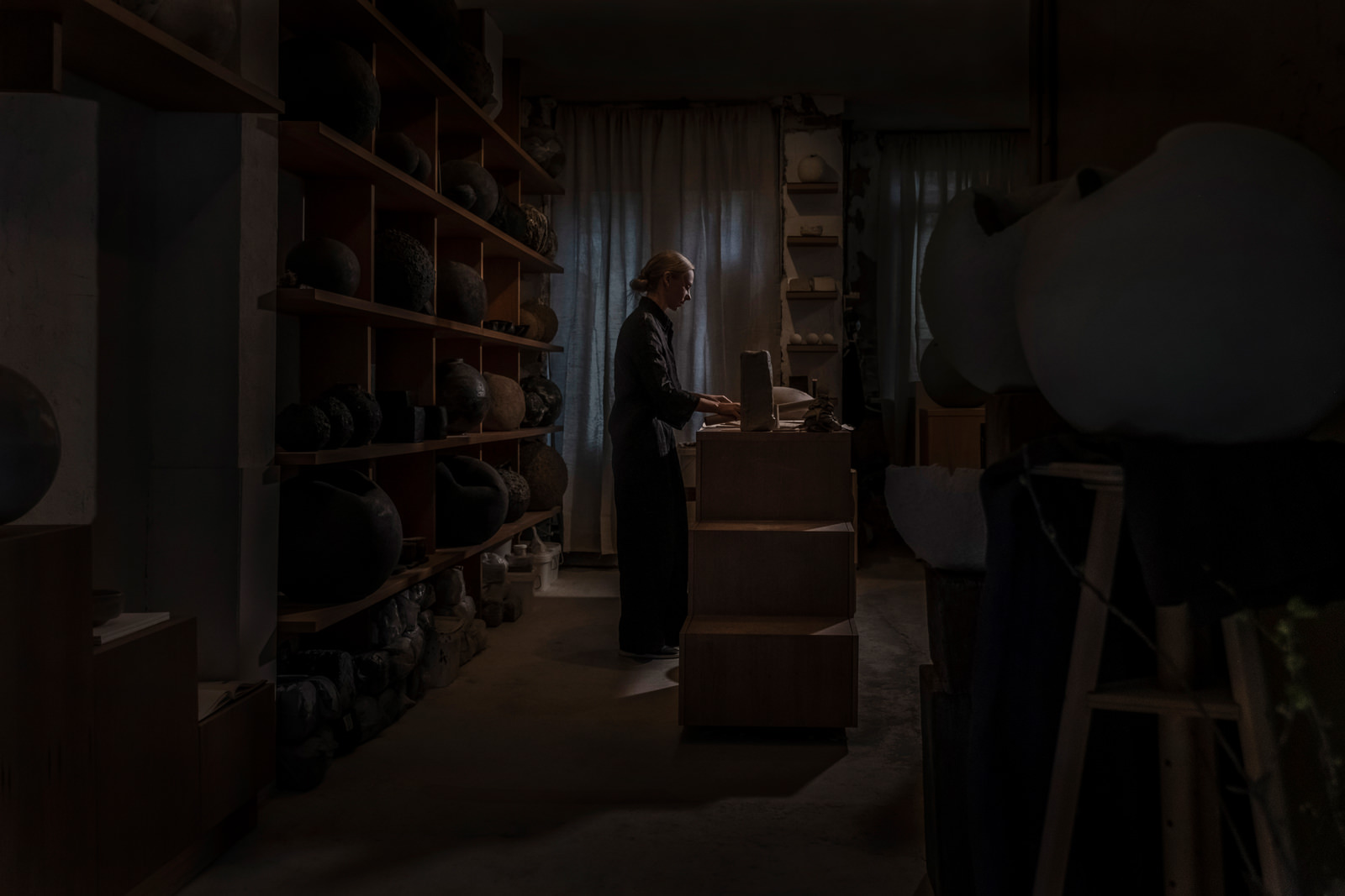 Pasquino has moved on from her laundry room and now creates in a studio space in a canal house characteristic of the city. She likes to work in the dark: “I can do my work with my eyes closed. I don’t need to look anymore,” she says, her circular movements an enchanting dance of ballerina arms. There is no formula that makes a piece “good” in Pasquino’s eyes—it’s an emotional connection. “I imagine how the piece is going to be, and when it’s completely opposite or doesn’t work out in my mind, then I crush it. I put a hammer to a lot of pieces,” she admits.