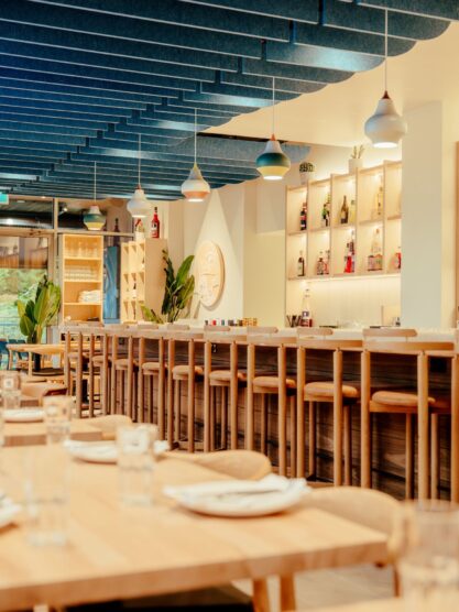 Or there’s Ombre, a Mediterranean restaurant with plenty to boast about, including a memorable savoury madeleine topped with foie gras and raspberry, and roasted carrots with labneh and puffed amaranth. The room itself is beautiful, with cool wood tones and plenty of natural light giving the space a relaxed, airy feel.