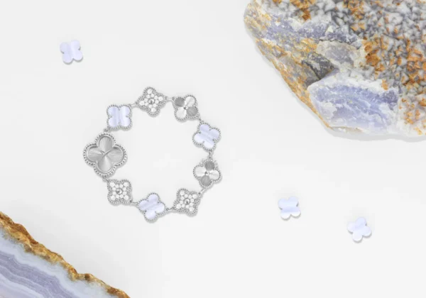 Van Cleef & Arpels is reinventing its iconic Alhambra collection as transformable jewellery. Long celebrated for its four-leaf-clover motif, the Alhambra line has been a hallmark of elegance since it was introduced in 1968. The maison’s new approach lets wearers create multiple looks from a single piece. New are two long necklaces—guilloché white gold, chalcedony, and white mother-of-pearl, as well as guilloché rose gold with grey and white mother-of-pearl—that transform into a short necklace and accompanying bracelet along with two reversible rings in matching finishes. The updated Alhambra collection may be a beloved classic worn by many, but its beauty lies in personal expression.