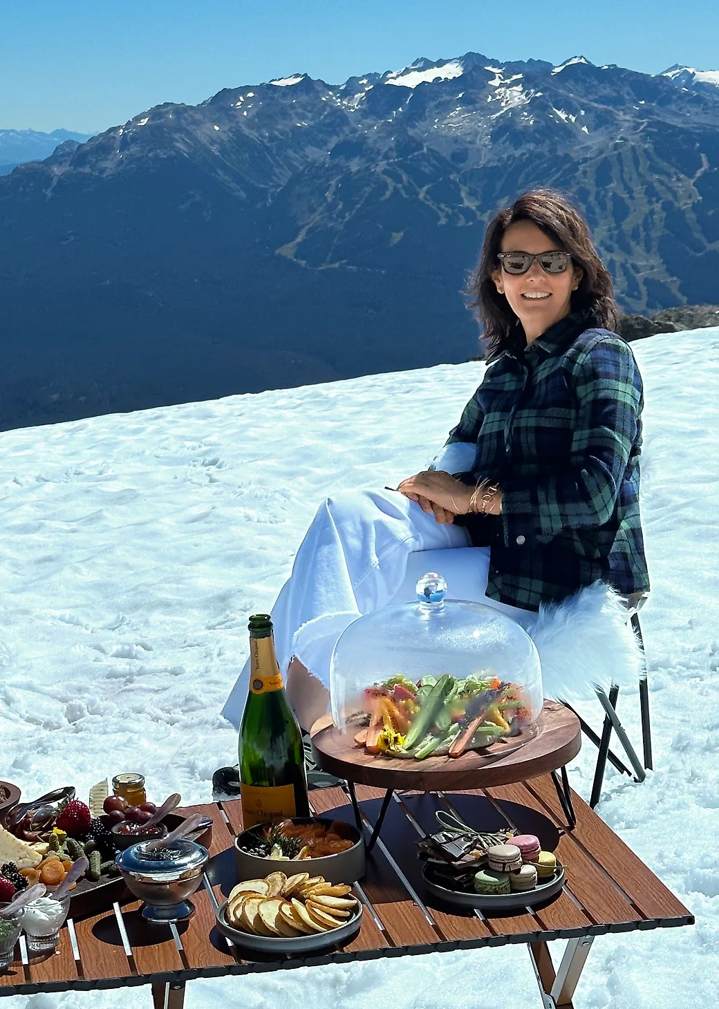 NUVO editor Claudia Cusano at Rainbow Glacier, guest of Fairmont Chateau Whistler and their Make Special Happen adventures. Photo by Viranlly.