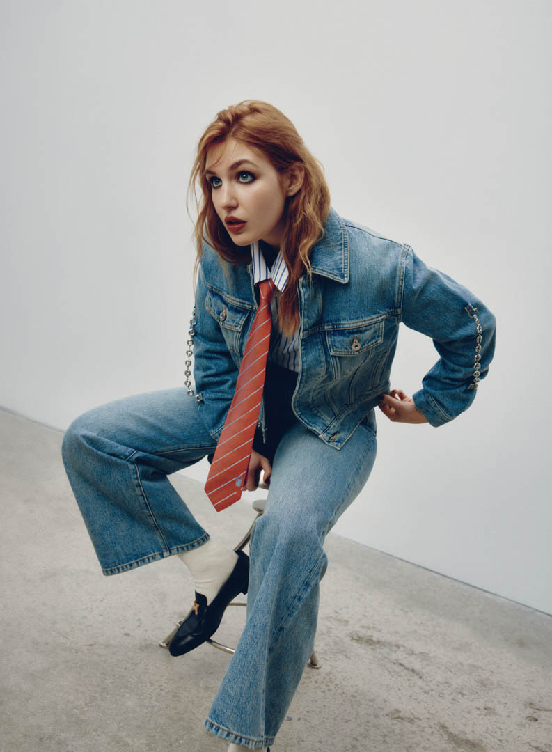 Focusing on a scene on a busy set is easy when you’ve had to “be focused on this 10-centimetre-wide beam, doing back flips on it while girls are running in the gym and screaming and your coaches are giving you notes and stuff,” she adds. Similarly, she’s used to repeating routines over and over until they are perfect. “It’s kind of the same with a scene.”