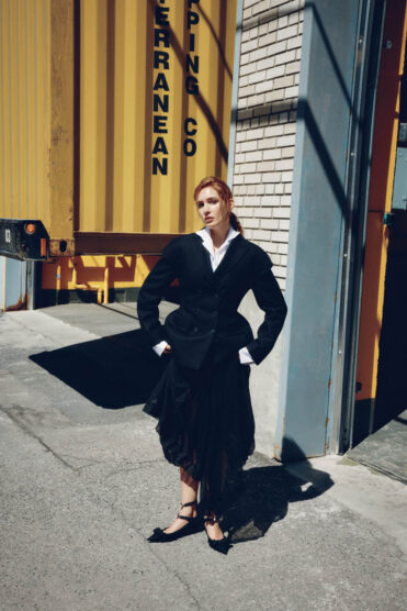Simone Rocha dress and Maison Margiela gloves, both available at Ssense.